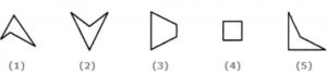 Q 4. वैकल्पिक विकल्प का चयन करें जो पांच वैकल्पिक आंकड़ों में से तीन का प्रतिनिधित्व करता है, जो एक दूसरे में लगाए जाने पर पूर्ण वर्ग बनाते हैं।